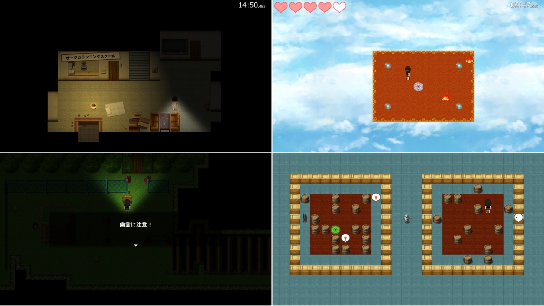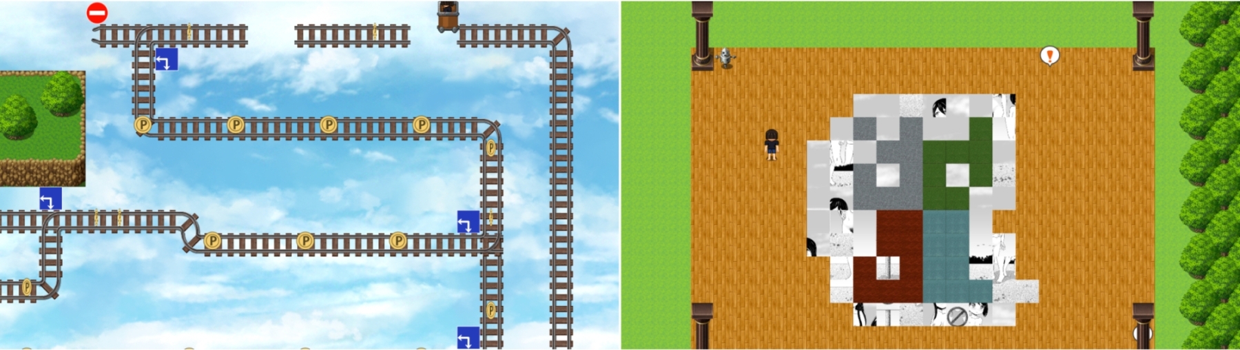 回想部屋にはクリアしたミニゲーム(かくれんぼ、きもだめし)の回想と立ち絵のパネルや歩行グラを設置できるよ。