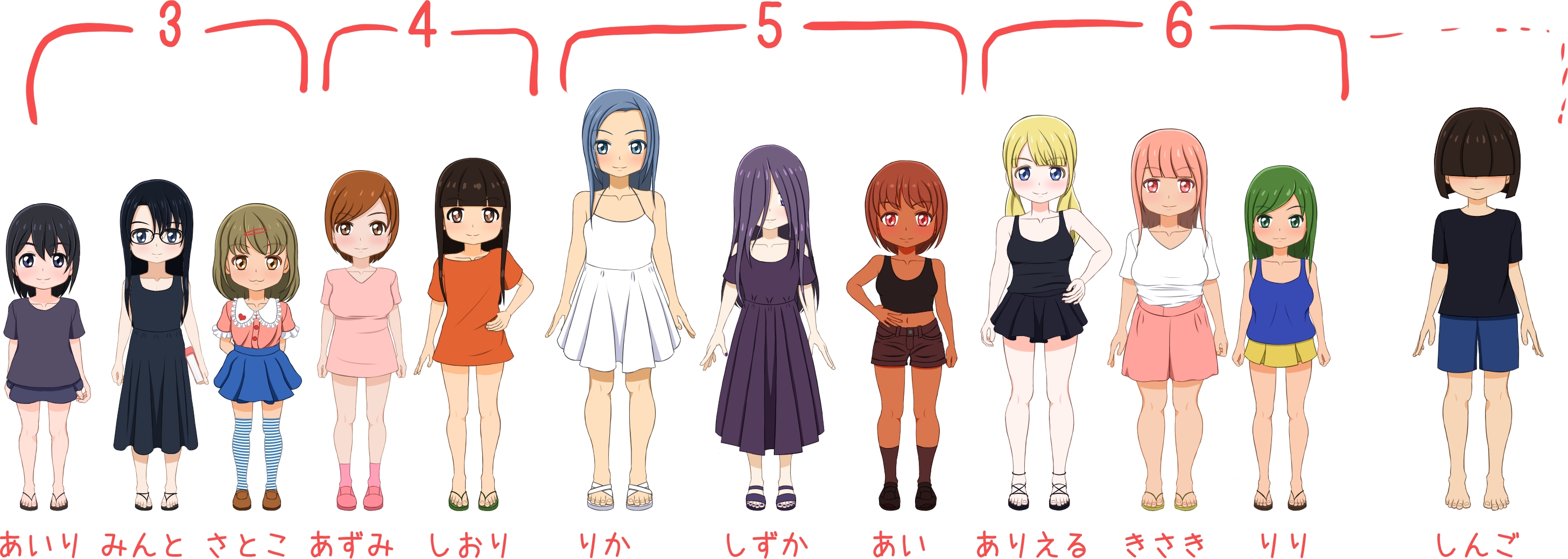アニメ風 11枚(女子11人分) + 追加分3枚(女子3人分)
