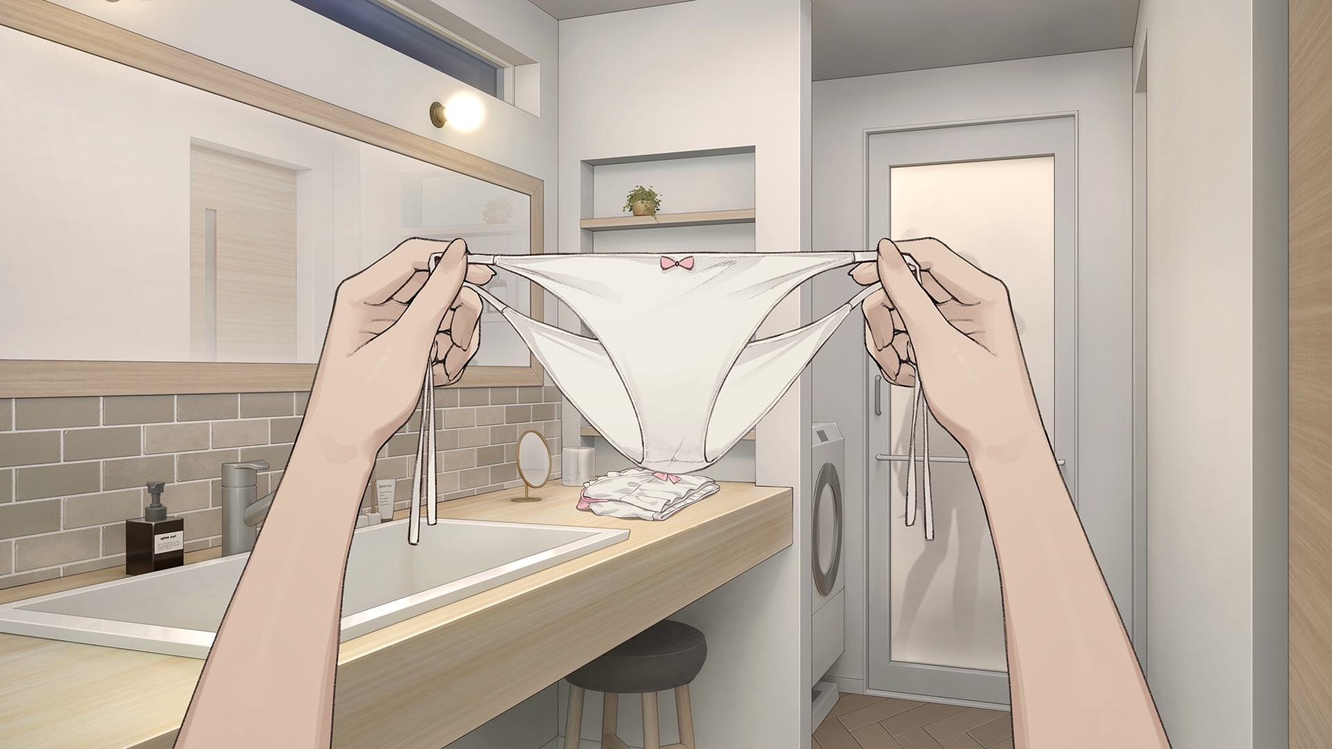 妹のパンツをこっそり持ち上げちゃおう!デザインは日替わりで毎日のお楽しみ。そのまま持ち去って自分だけの場所に隠しちゃうことも……!?