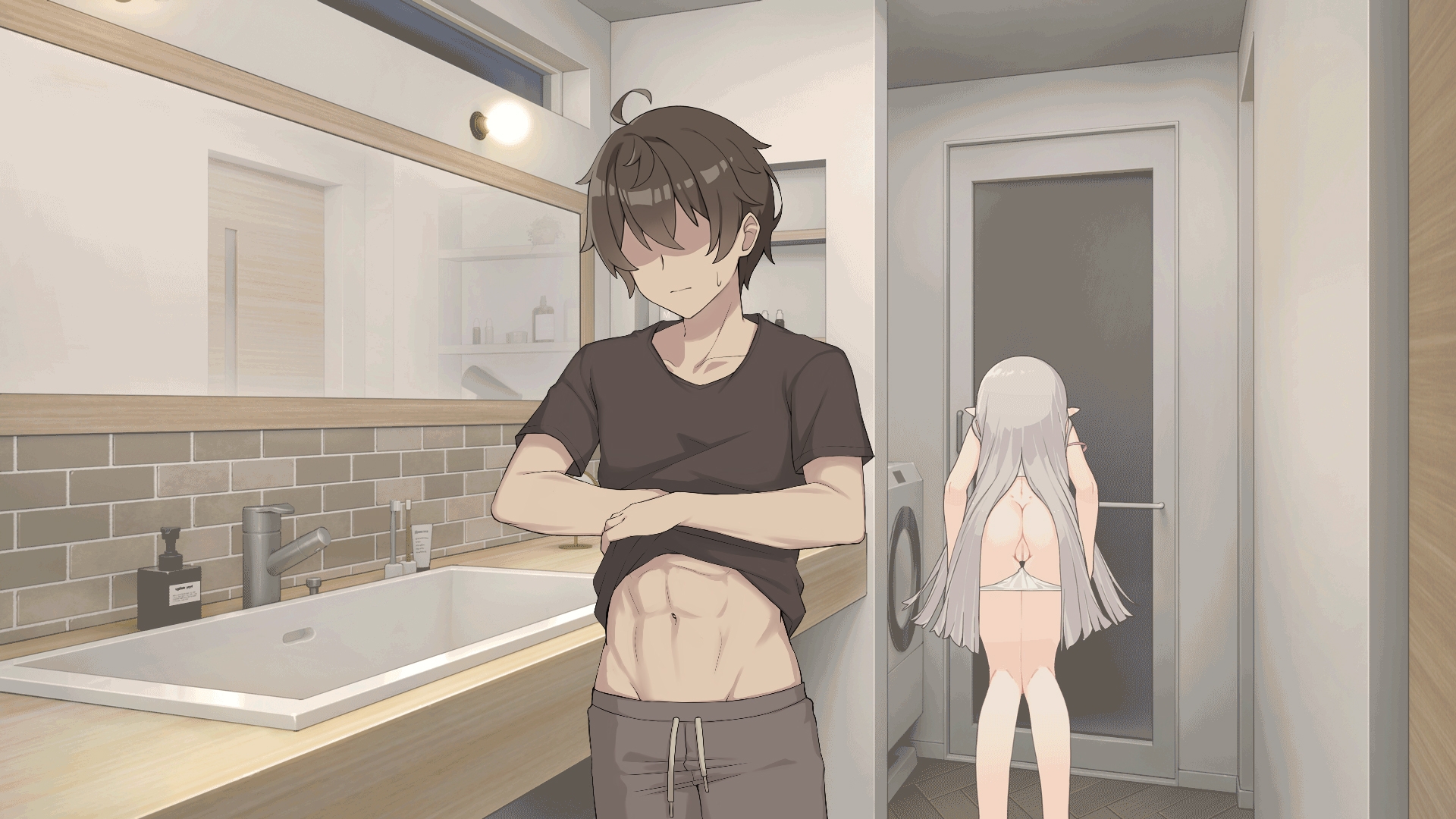 妹の入浴中、隙を突いてこっそり浴室に忍び込んじゃいましょう……!気づかれないように潜入するドキドキのシチュエーションが楽しめます。