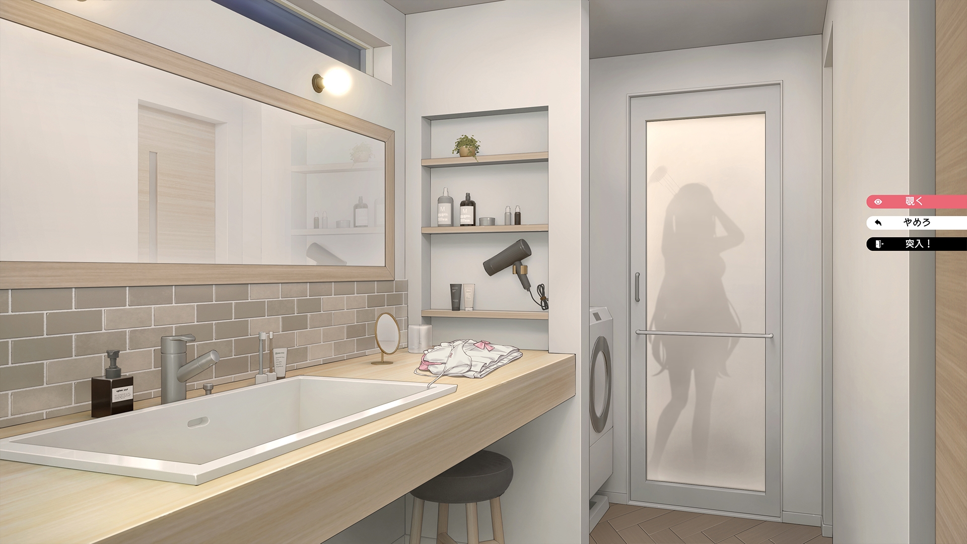 洗面所での物音に気づいたり、シャンプーが切れたりして、妹がふと様子を見に来ることも……。そんな絶体絶命のピンチ、あなたならどう切り抜ける!?