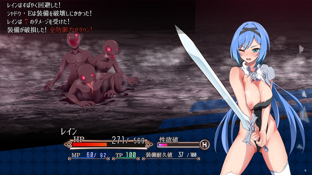 破損すると防御力の低下はもちろん、肌の露出によって敵の性的な攻撃の効果が上がってしまいます。 -